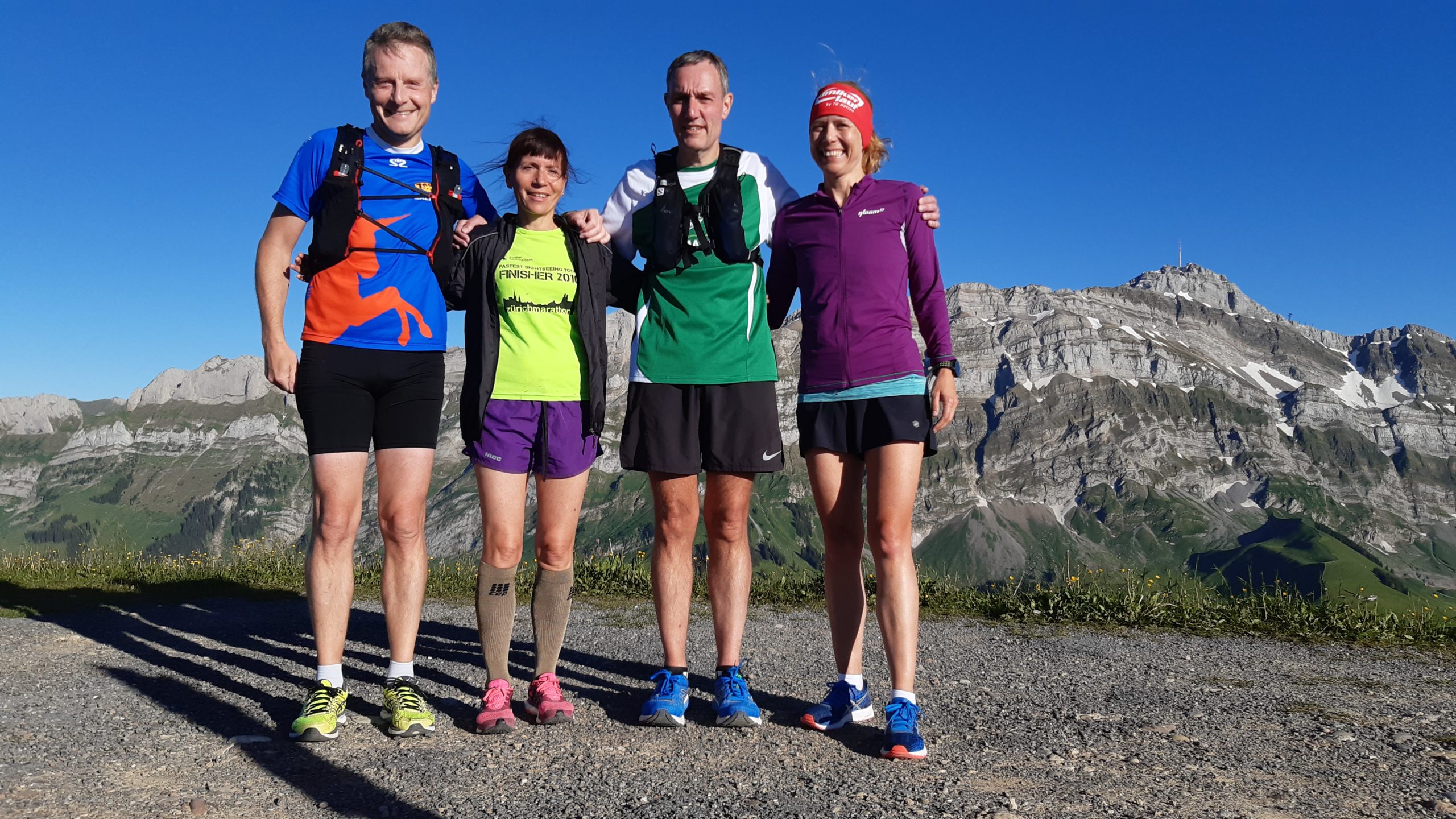 Im Jahr 2020 ist läuferisch alles anders. Covid-19 pflügt die Laufagenda komplett durch, und kennt auch bei unseren Montag-Mittwoch-Trainings kein Pardon. Einfach zu Hause sitzen ist keine Alternative, und so beschliessen wir Vier, unsere Trainings regelmässig zur gewohnten Zeit weiterzuführen. Die Wochenenden sind aber trotzdem voller Wettkampf-Löcher. Zum Glück hat Christoph die rettende Idee: Wir könnten ja die Schnebelhorn Halbmarathonstecke ablaufen. Die Männer sind von der Idee sofort begeistert. Bei den Frauen löst das Unbehagen und grössere Diskussionen aus: Was ist, wenn jetzt im Mai plötzlich ein Schneesturm aufkommt? Und wir uns verirren (im Züri Oberland wohlbemerkt)? Die Liste lässt sich noch beliebig fortsetzen. Nach ein paar schlaflosen Nächten willigten die Damen aber trotzdem ein, und beginnen die neue läuferische Freiheit zu geniessen. Und so bietet der Lockdown auch Chancen, Neues auszuprobieren. Es folgen noch viele weiter Läufe im schönen Appenzeller Land.