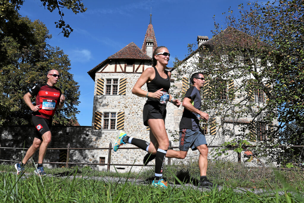 Die Streckenführung wurde gegenüber den Vorjahren leicht angepasst und die ersten «schnellen» Kilometer vom Dorf runter an den See gab es nicht, da sich der Start beim Strandbad befand. Die Strecke rund um den Hallwilersee ist zwar mehrheitlich flach aber mit ein paar Wellen und einigen scharfen Ecken gespickt. Und der aufgeweichte und teils rutschige Boden machte es auch nicht leichter, das gewünschte Tempo zu halten. Die Strecke an der schönen Uferlandschaft ist sogar bei Nieselregen ein Erlebnis und führt in Seengen sozusagen durch das umspülte Schloss Hallwyl. Etwa bei Rennhälfte hatte der Veranstalter extra noch ein paar Fans postiert, die für etwas Stimmung sorgten. Sonst waren kaum Zuschauer an der Strecke, obwohl es irgendwann aufgehört hatte zu regnen. Auf den letzten Metern vor dem Ziel wurde nochmals kräftig gefightet und die letzten Kraftreserven mobilisiert.