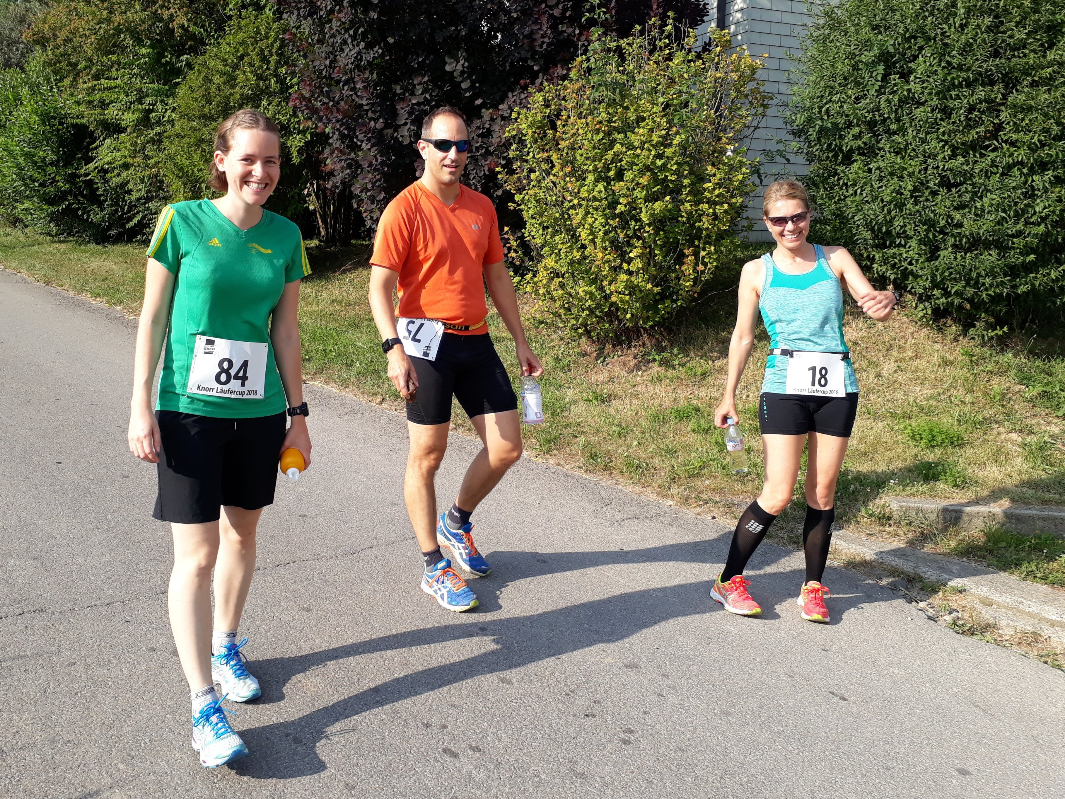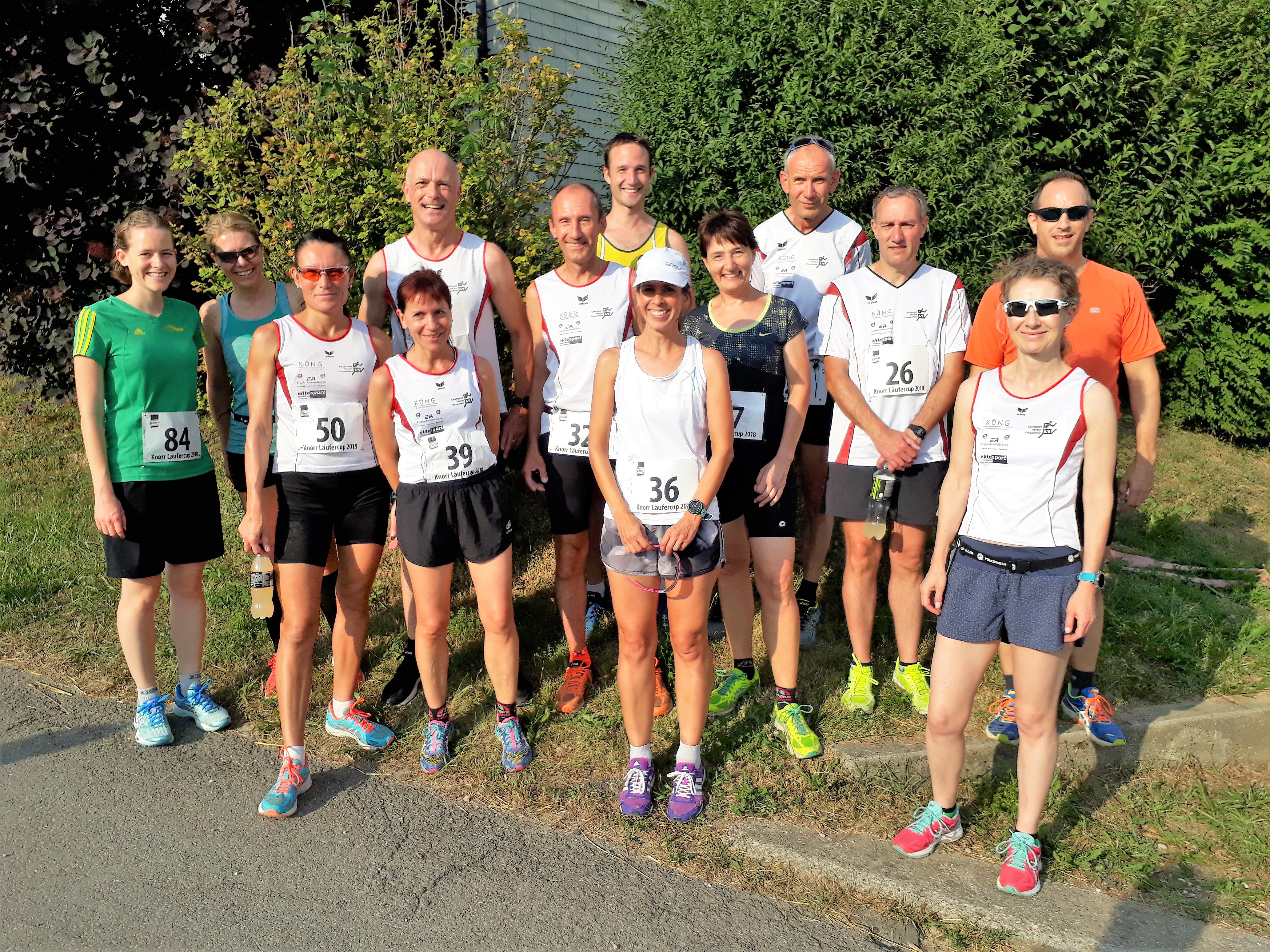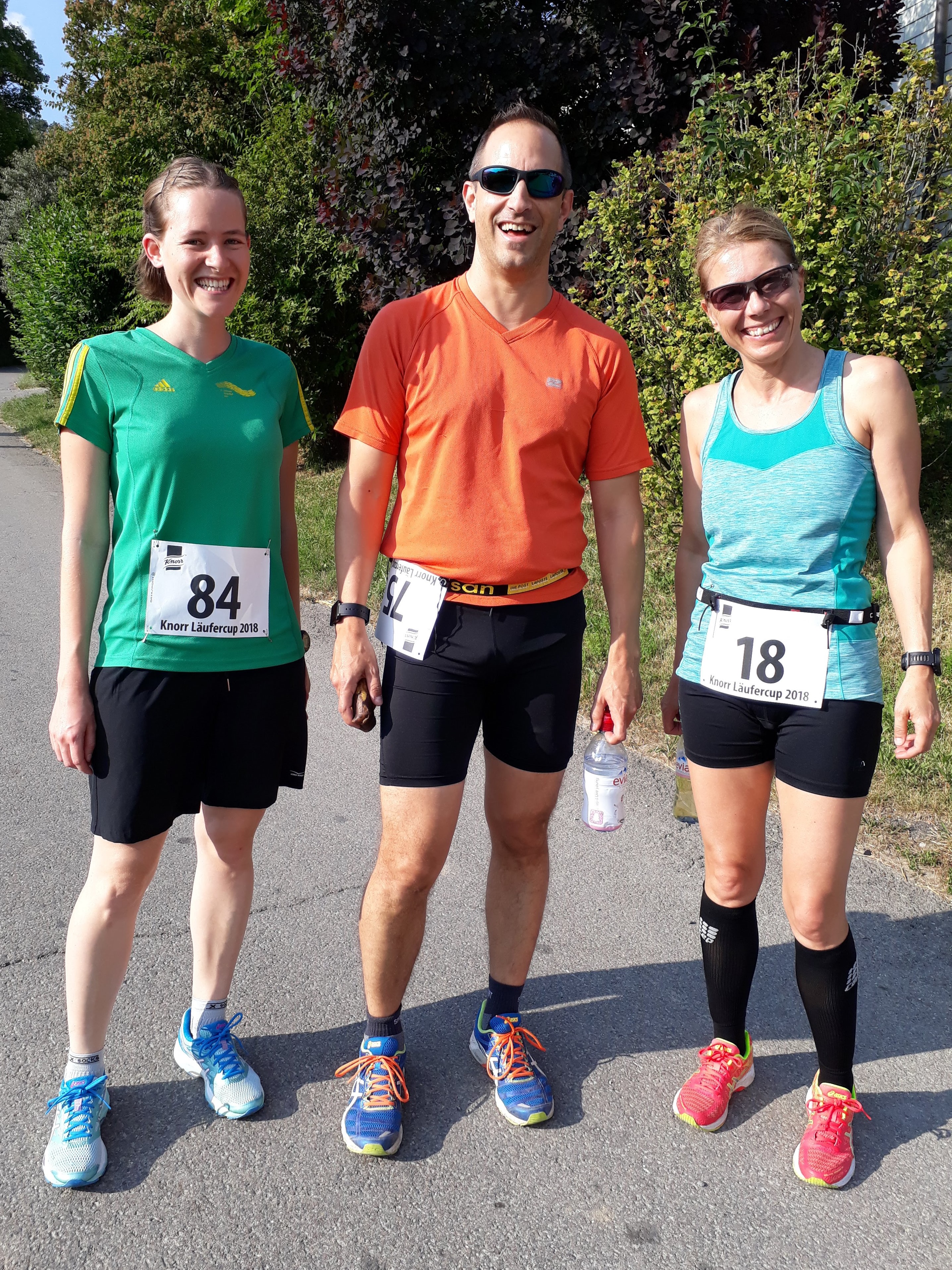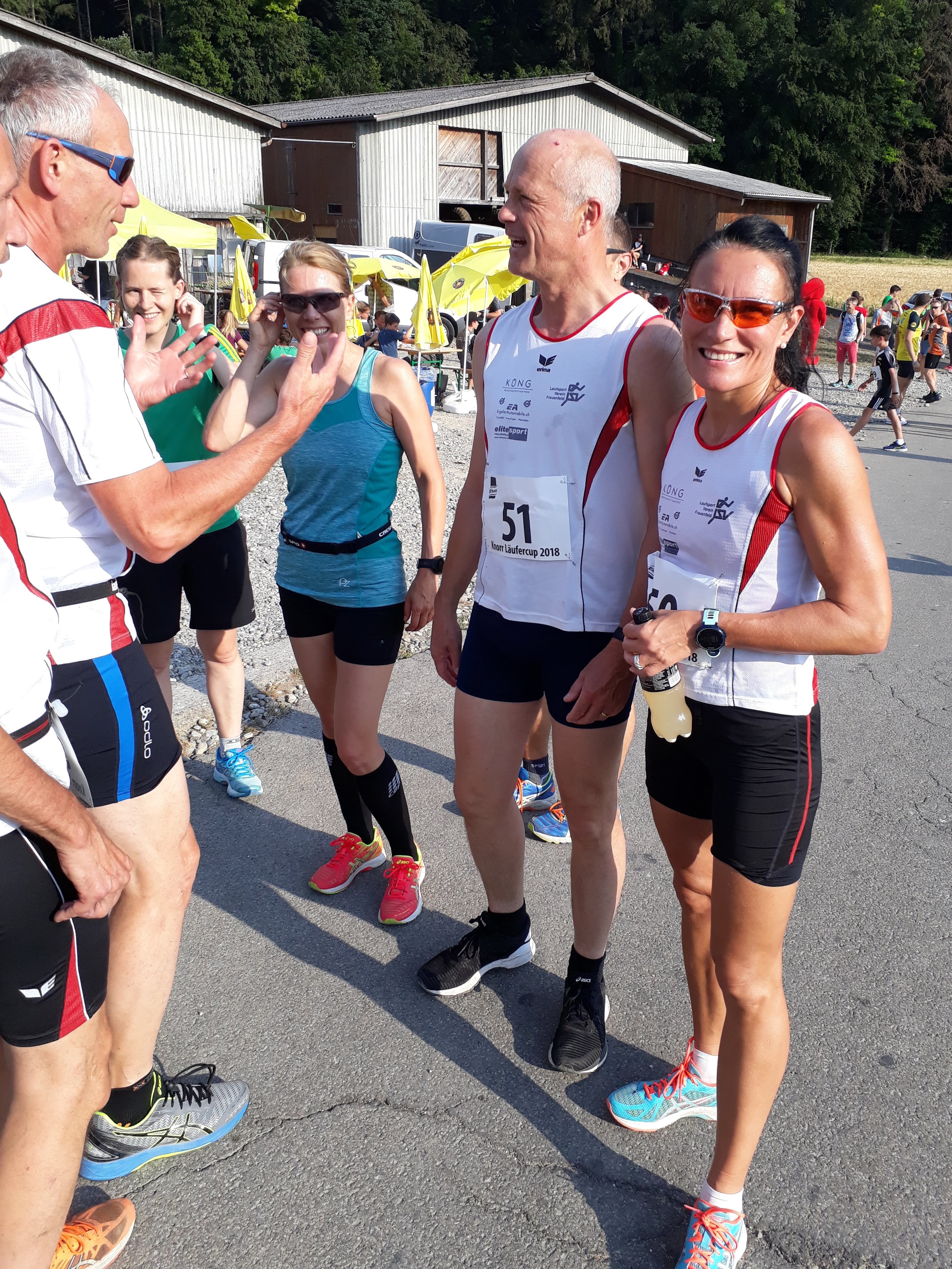 Er hat viele Namen, der Lauf in Thayngen, zumindest, wenn man die Einträge der LSV Mitglieder auf dem Garmin App anschaut. 41. Knorr Läufercup oder Knorr Lauf Thayngen meinten die einen, andere fanden das wohl zu trocken für diesen eher kurzen und familiären Lauf und benannten ihn liebevoll mit Knorrlilauf. Varianten gab es noch mit oder ohne Bindestrich. (Wieso nannte auch niemand den Lauf «Unilever Lauf»? So wäre die grosse Fabrik in Thayngen nämlich angeschrieben.) So vielfältig die Namen auf Garmin auch sind, für alle ist dieser Laufanlass jedoch eines: der Inbegriff von Sommer. Sonnenblumenfelder, sattes Grün, trockene, staubige Naturstrassen, herrlich kühle Waldwege und wie jedes Jahr eine gesunde Portion Mücken und anderes «Gefleuch» das den Proteinbedarf der Läuferinnen und Läufer während des Laufs abdeckt und danach diejenigen mit dem süssesten Blut zerstechen. An diesem Freitagabend, den 29. Juni, war es nicht gar so heiss wie in den Jahren vorher, aber immer noch sommerlich warm, um tüchtig ins Schwitzen zu kommen. Wahrscheinlich ist der Knorrlilauf darum so schön, weil man immer wieder einmal durch den Wald laufen kann und man für eine Weile etwas Abkühlung hat. Nach dem letzten Anstieg bei Kilometer 8, geht es hinunter ins Ziel, jeder hat wohl noch tüchtig Gas gegeben. (Leider nicht genug für die einen. Schon wieder um Sekunden am Podest vorbeigerannt! Lernt sie es denn nie, auch nicht nach dem Plauderstündchen während des Märwiler Triathlon in der Wechselzone!)