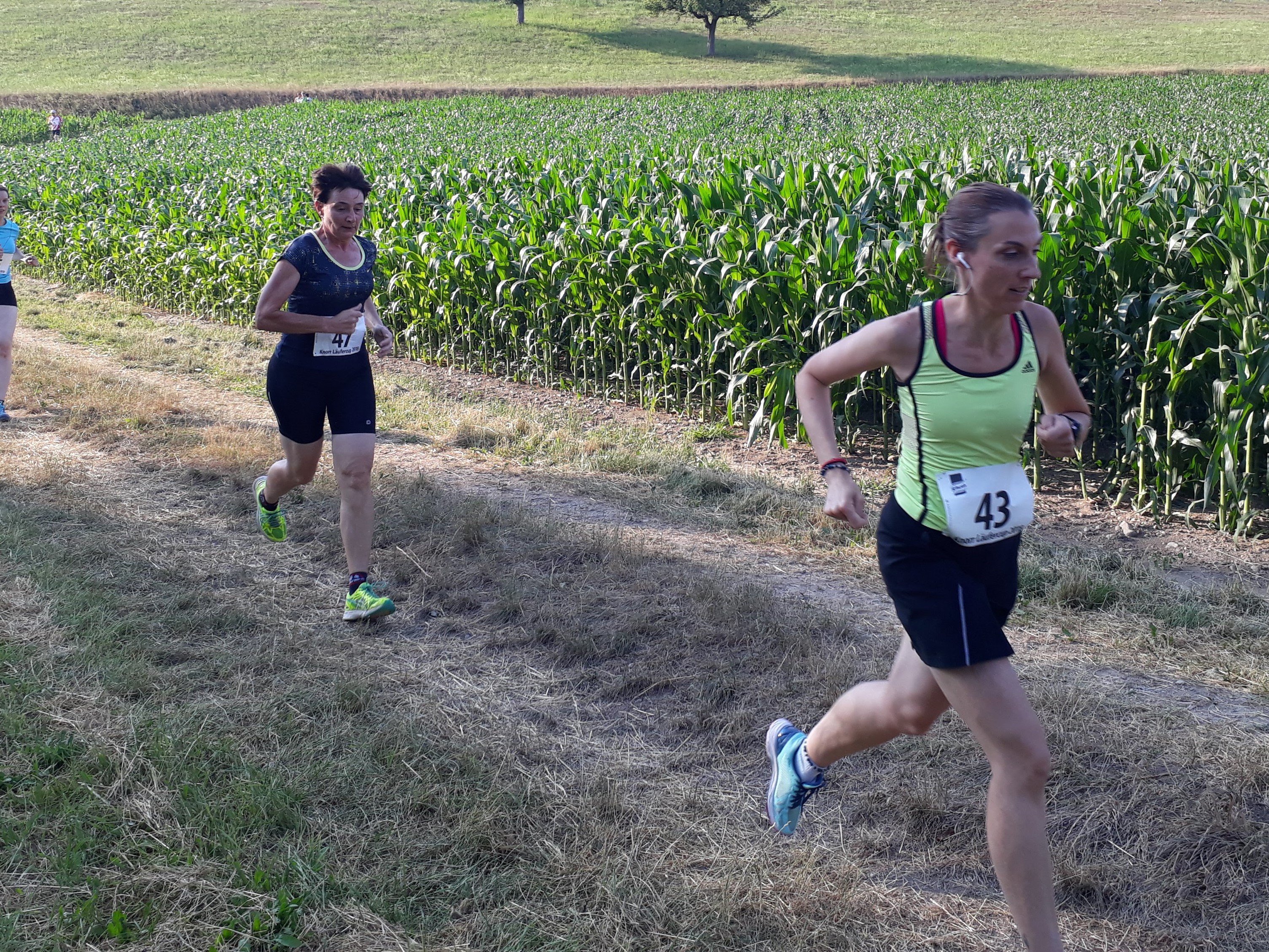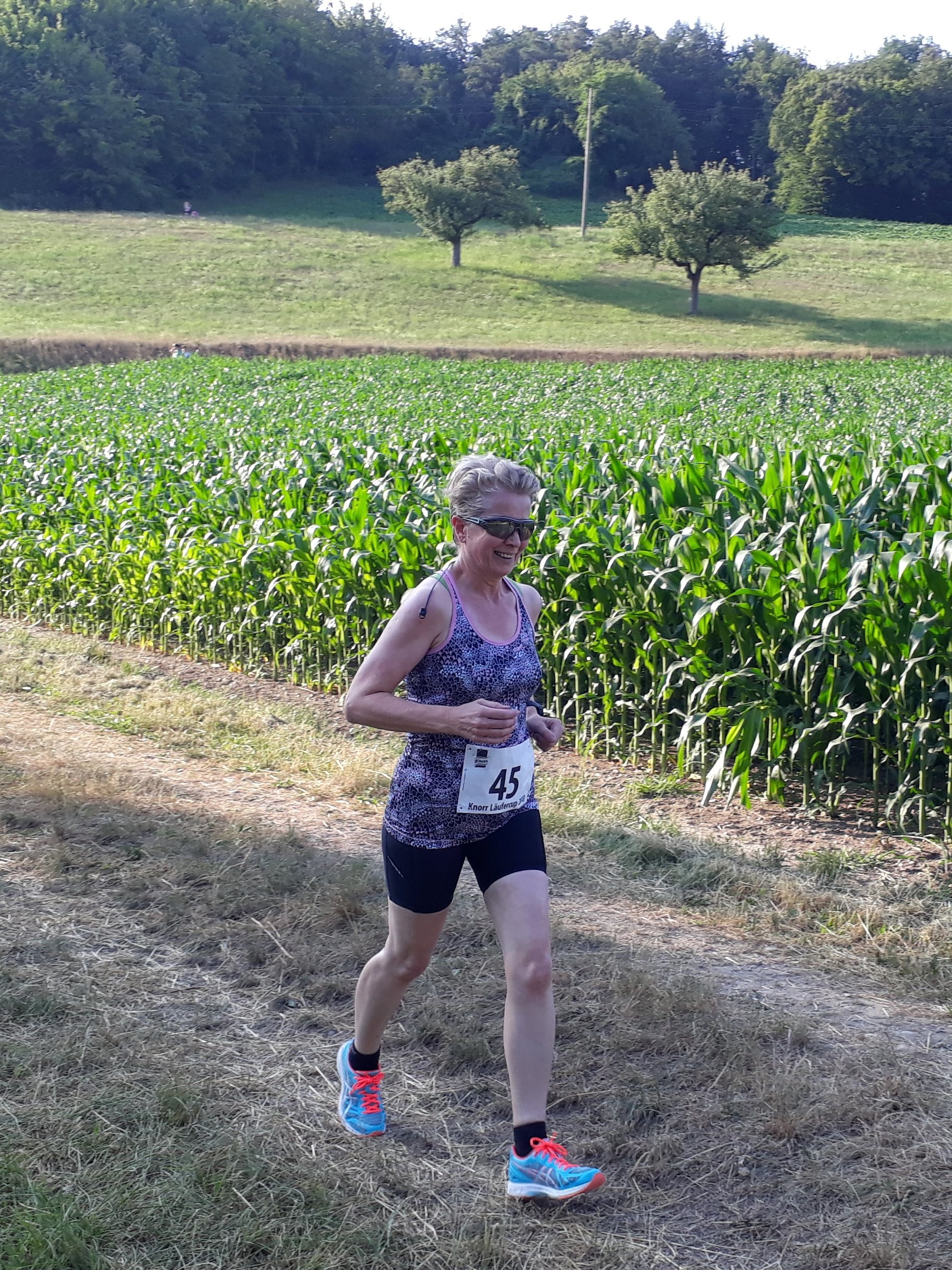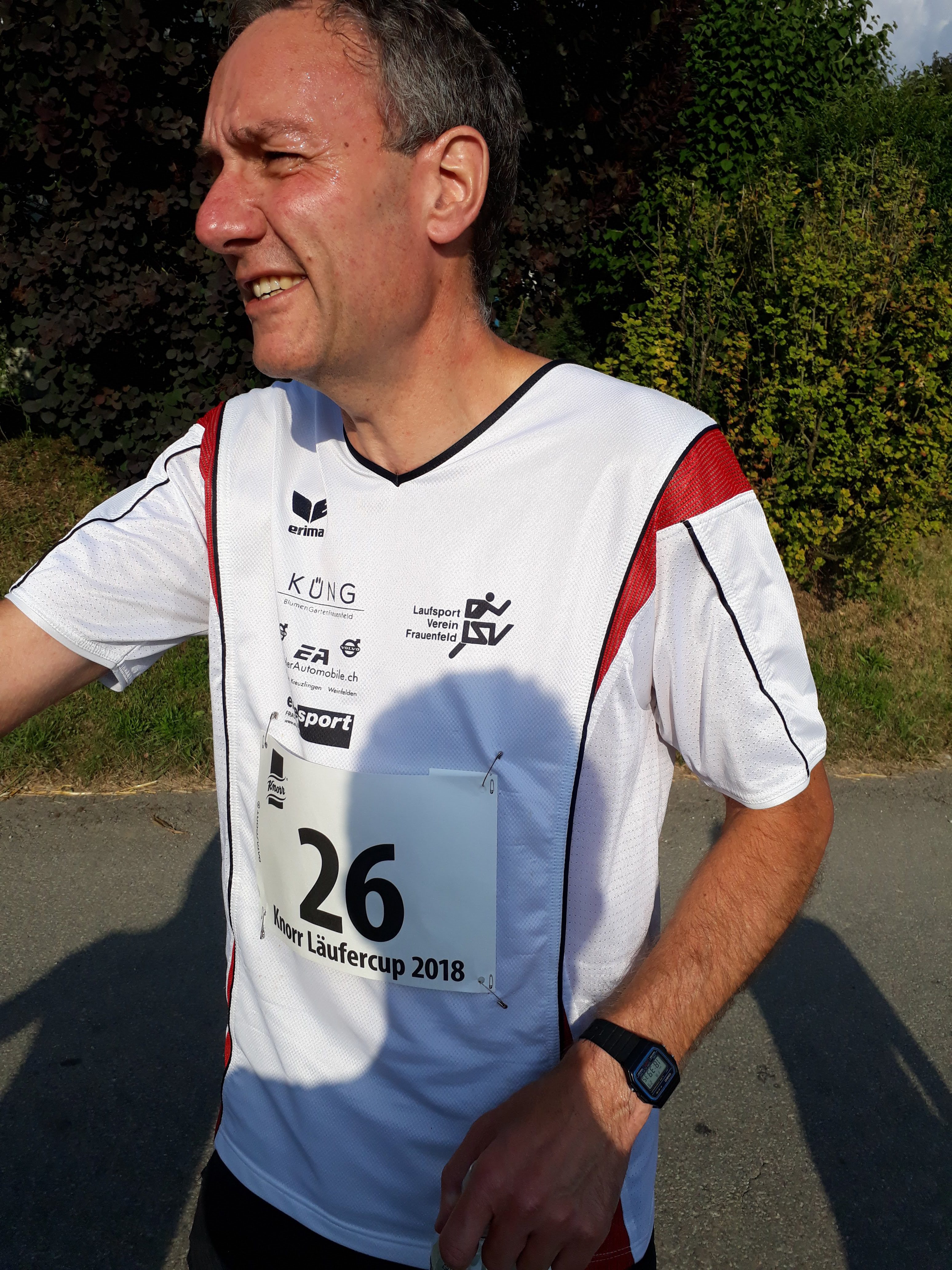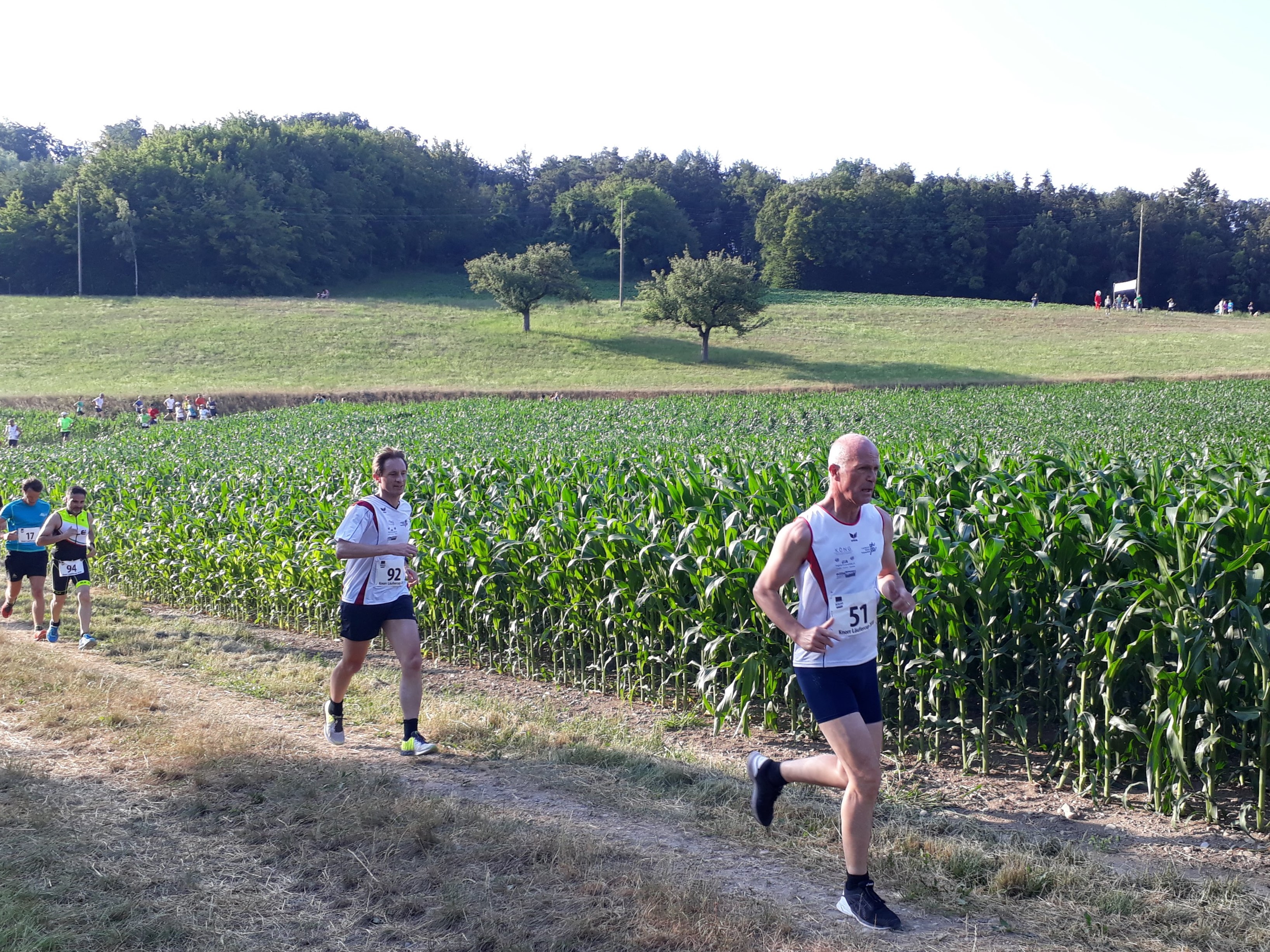 Er hat viele Namen, der Lauf in Thayngen, zumindest, wenn man die Einträge der LSV Mitglieder auf dem Garmin App anschaut. 41. Knorr Läufercup oder Knorr Lauf Thayngen meinten die einen, andere fanden das wohl zu trocken für diesen eher kurzen und familiären Lauf und benannten ihn liebevoll mit Knorrlilauf. Varianten gab es noch mit oder ohne Bindestrich. (Wieso nannte auch niemand den Lauf «Unilever Lauf»? So wäre die grosse Fabrik in Thayngen nämlich angeschrieben.) So vielfältig die Namen auf Garmin auch sind, für alle ist dieser Laufanlass jedoch eines: der Inbegriff von Sommer. Sonnenblumenfelder, sattes Grün, trockene, staubige Naturstrassen, herrlich kühle Waldwege und wie jedes Jahr eine gesunde Portion Mücken und anderes «Gefleuch» das den Proteinbedarf der Läuferinnen und Läufer während des Laufs abdeckt und danach diejenigen mit dem süssesten Blut zerstechen. An diesem Freitagabend, den 29. Juni, war es nicht gar so heiss wie in den Jahren vorher, aber immer noch sommerlich warm, um tüchtig ins Schwitzen zu kommen. Wahrscheinlich ist der Knorrlilauf darum so schön, weil man immer wieder einmal durch den Wald laufen kann und man für eine Weile etwas Abkühlung hat. Nach dem letzten Anstieg bei Kilometer 8, geht es hinunter ins Ziel, jeder hat wohl noch tüchtig Gas gegeben. (Leider nicht genug für die einen. Schon wieder um Sekunden am Podest vorbeigerannt! Lernt sie es denn nie, auch nicht nach dem Plauderstündchen während des Märwiler Triathlon in der Wechselzone!)