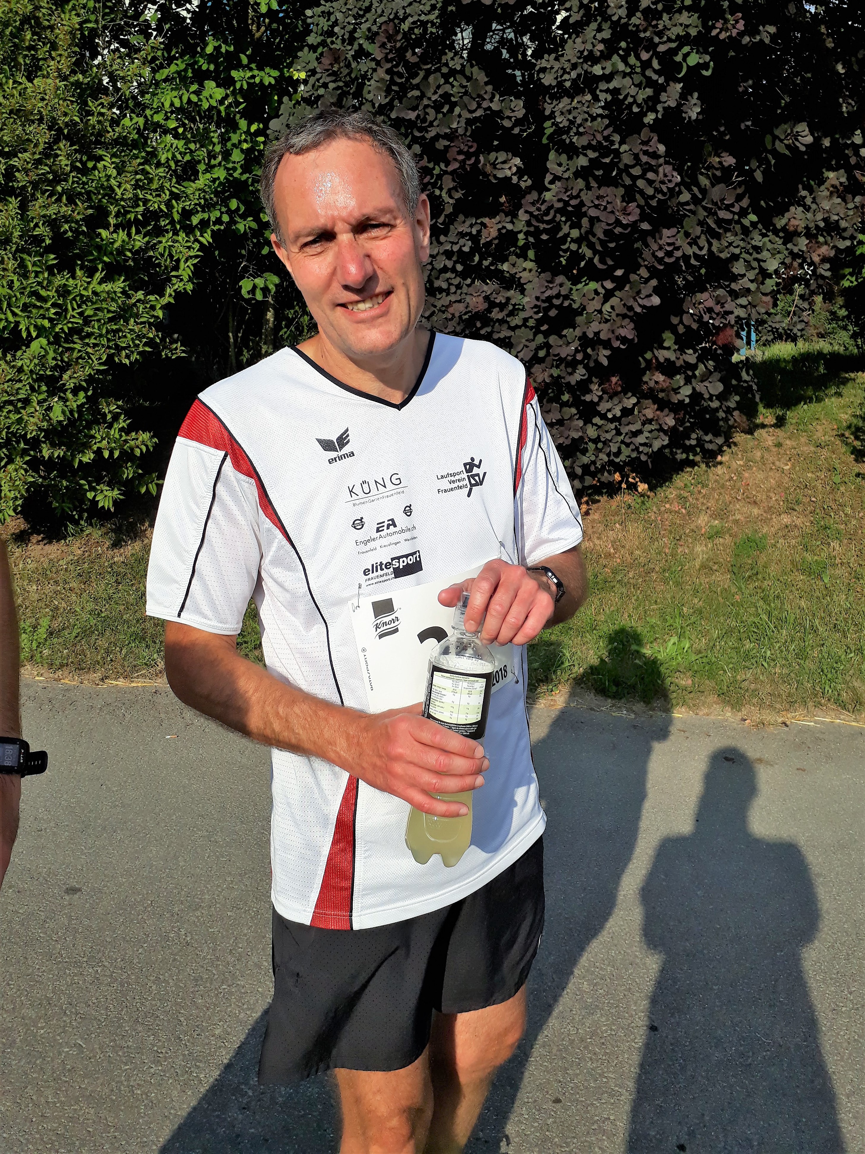 Auf race|result kann man übrigens die ganze Rangliste nachschauen. Man findet sie unter 41. Knorr Läufercup. Wer nun behauptet, dass ist der offizielle Name dieses Laufevents, der irrt sich. Die Ausschreibung des Knorrlilaufes lautet: 41. Knorr-Läufercup – also mit einem Bindestrich. Die Diskussion ist somit eröffnet. Oder auch nicht, denn für viele ist und bleibt der Lauf am Anfang der Thurgauer Sommerferien einfach der Knorrlilauf. Schliesslich steht der Knorrli dort im Ziel und winkt einem mit der Suppenkelle. Der arme Kerl, in dem Kostüm muss es ja schrecklich heiss sein!
