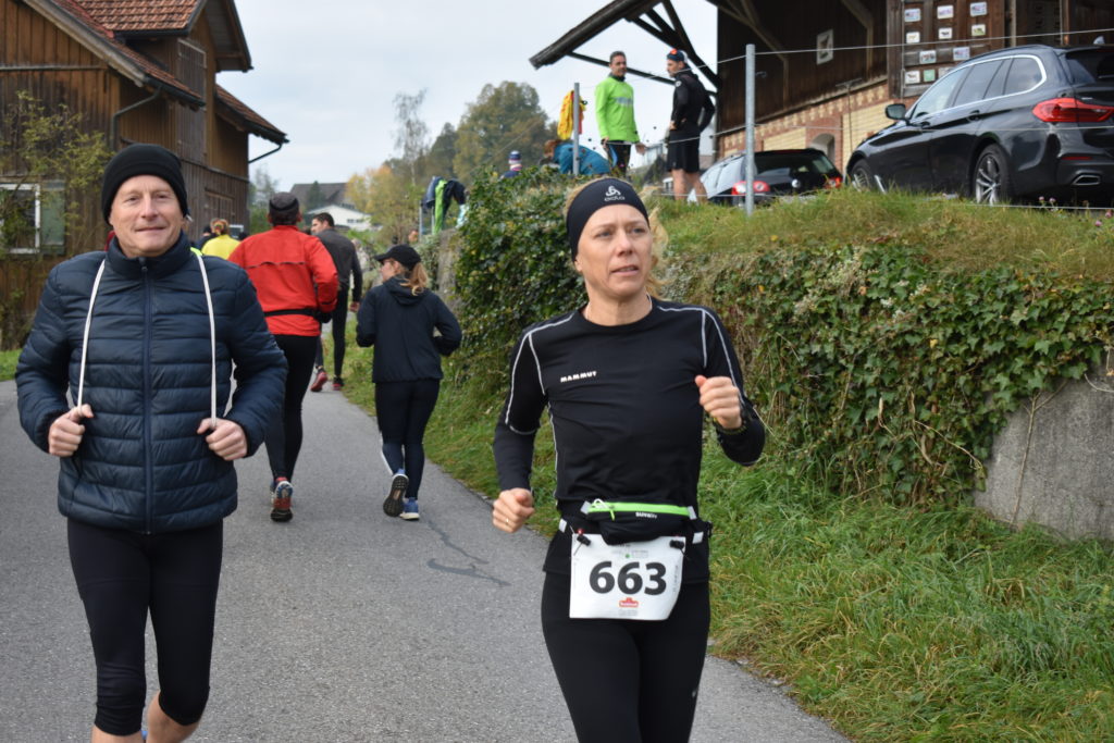 Die Strecke in Speicher ist wunderschön, auch wenn die Sonne nicht so recht raus will. Es geht hinauf zum Schnuggenbock, immer wieder mal ein Appenzeller Hügel hoch, aber nicht allzu schlimm, durch Wald und Feld, stetig aufwärts und dann wieder über die Waldegg hinunter zum Ziel. Jeder geniesst es, so viele altbekannte Gesichter sind unterwegs und im Ziel anzutreffen. Es ist schön, wieder einmal gemeinsam an einen Lauf zu gehen, zu vergleichen und sich wieder einmal etwas vorzunehmen. (Zum Beispiel wieder etwas disziplinierter zu trainieren, weniger zu snacken und beim nächsten Mal den Badge und die Nummer mitnehmen!)