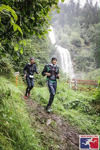 Nach Bad Serneus folgte der 800m Vertical Trail. Dieser Trail hatte es in sich, war der Boden doch so rutschig, dass der Aufstieg ohne Stöcke schon fast nicht mehr machbar war. Es begann wieder richtig stark zu regnen und ich hatte ziemlich mit der Motivation zu kämpfen, war ich doch mittlerweile durchnässt. Entlang der Schmalspur Zugstrecke nach Davos ging es über wunderschöne Mischwaldabschnitte und Singletrails zurück zum Ausgangspunkt Sportanlage Arena Klosters.