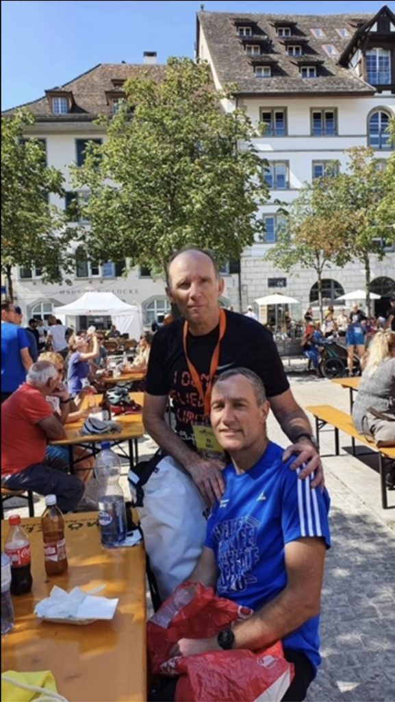 Auf der Startliste waren über 300 Teilnehmer verzeichnet, was mir in Anbetracht der zum Teil schmalen Gassen Sorgen bereitete. Christoph, unser Laufkenner, hat bereits 2019 am Schaffhauser Stadtlauf teilgenommen und konnte mir für meinen ersten Stadtlauf ein paar Tipps geben. Die Organisation war hervorragend. Auf dem Startgelände hatte es genügend Sitz- und Schattenplätze und nirgends mussten wir Schlange stehen. Der OK Präsident war vor Ort und hat sich über die rege Teilnahme sehr erfreut gezeigt, hatte er sogar Zeit mit einigen Läuferinnen und Läufern ein Schwätzchen zu halten. Wir haben viele bekannte Gesichter getroffen. Die Teilnehmerinnen und Teilnehmer waren dankbar, wieder einmal einen Lauf bestreiten zu können.