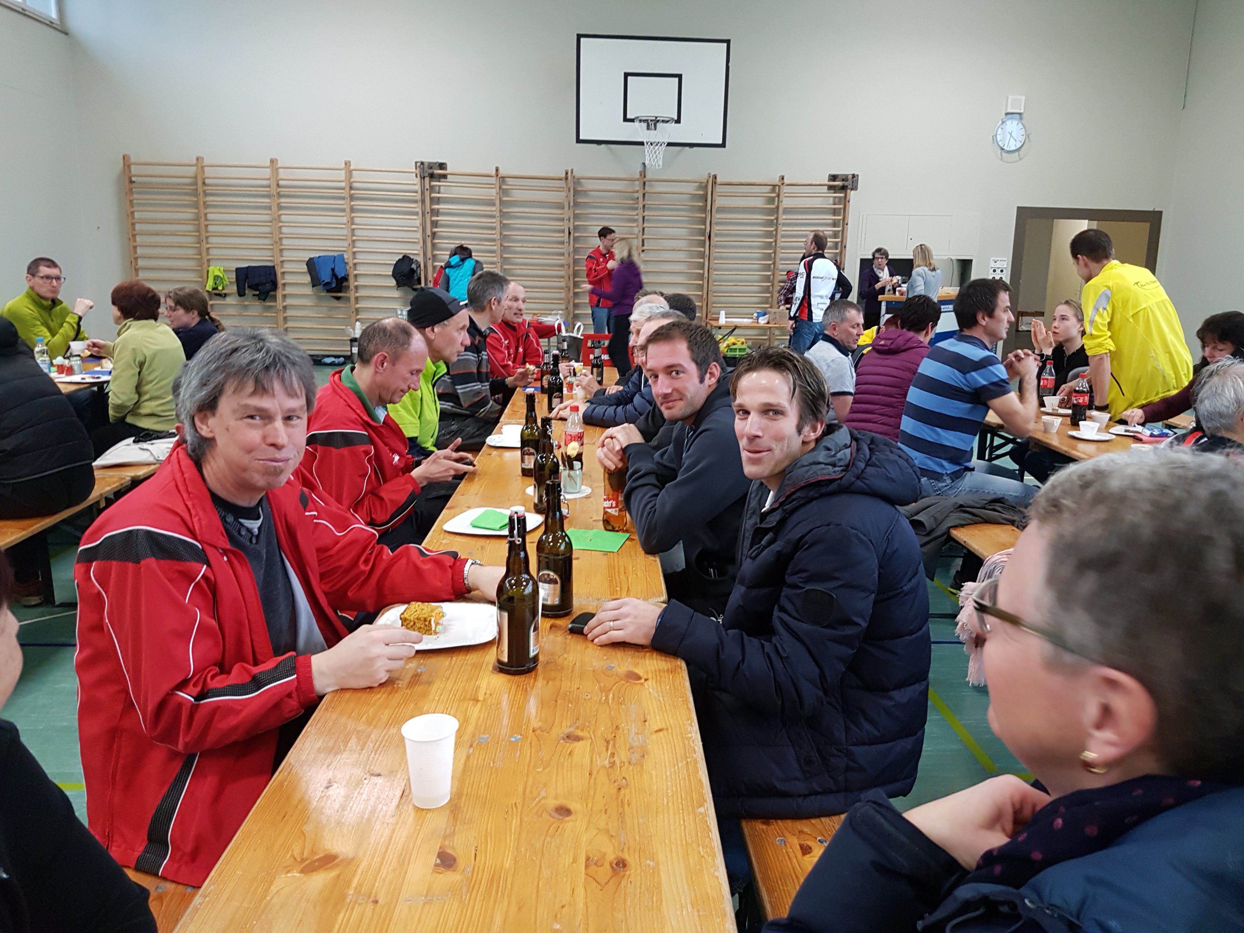 Am Lauftag sorgten die Vorfahrer und die Helfer an den Kreuzungen für Sicherheit und das keiner in seinem Eifer eine falsche Abzweigung nimmt. Und wie bei jedem Lauf standen Fotografen zur Stelle und haben alles dokumentiert und festgehalten. Und in der Turnhalle Oberwiesen wurde man super mit Kuchen von Spenderinnen und Spendern bewirtet. Ausserdem waren die Tische liebevoll dekoriert. Sind die Zucker-Eili eigentlich zum Essen dort gewesen? Wenn ja, danke! Wenn nein, hoffentlich hat niemand so genau geguckt.