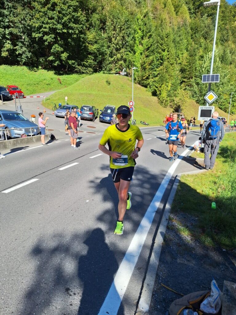 Jetzt gibt es das T-Shirt, dä Plämpu, Linzertörtli, Banane, ein Bier und, was für die Ü45 wichtiger ist, die Lesebrille. So kann man dann bei bestem Ausblick den Lauf auf Strava hochladen, Bilder machen und der Welt von seiner Leistung erzählen.
