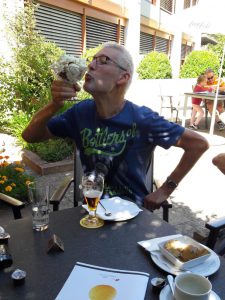 Unterwegs wurde ein Kirschbaum zum kleinen «Durstlöscher». Als letzter Abschlag wurde die Wiese beim Altersheim gewählt. Nicht ohne Grund: Gelände erkunden für die ferne Zukunft! Ausserdem hat es dort eine wunderbare Gartenwirtschaft und wir kamen nicht zu kurz bei Bier und/oder Glace.