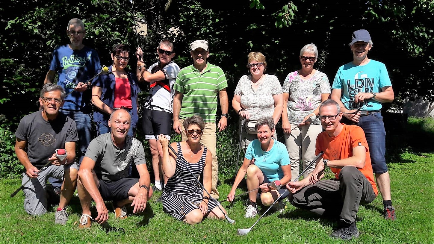 Los ging’s im Lindenpark. Wir teilten uns in zwei Gruppen auf, um die Wartezeiten zu verkürzen. Weiter ging es über`s Guggenhürli zum Schloss, über den Botanischen Garten zum Burstelpark usw. Unsere Gruppe unter Führung von Brigitte, die mit dem E-Bike unterwegs war, fand die Posten immer ohne Probleme. Hansjörg versenkte seinen Ball in der Kanti im falschen Loch und Erwin liess sich von keinem Gebüsch stoppen.